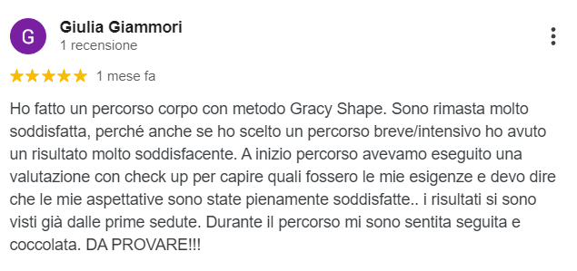 Il metodo “Gracy Shape” è un percorso che ho ideato personalmente, e trovi solo nel mio centro estetico, per aiutare le mie clienti a contrastare ogni tipo di inestetismo: cellulite, pelle a buccia d’arancia, ritenzione idrica, accumuli di grasso, smagliature, pelle con perdita di tono, ma anche gambe stanche e appesantite.